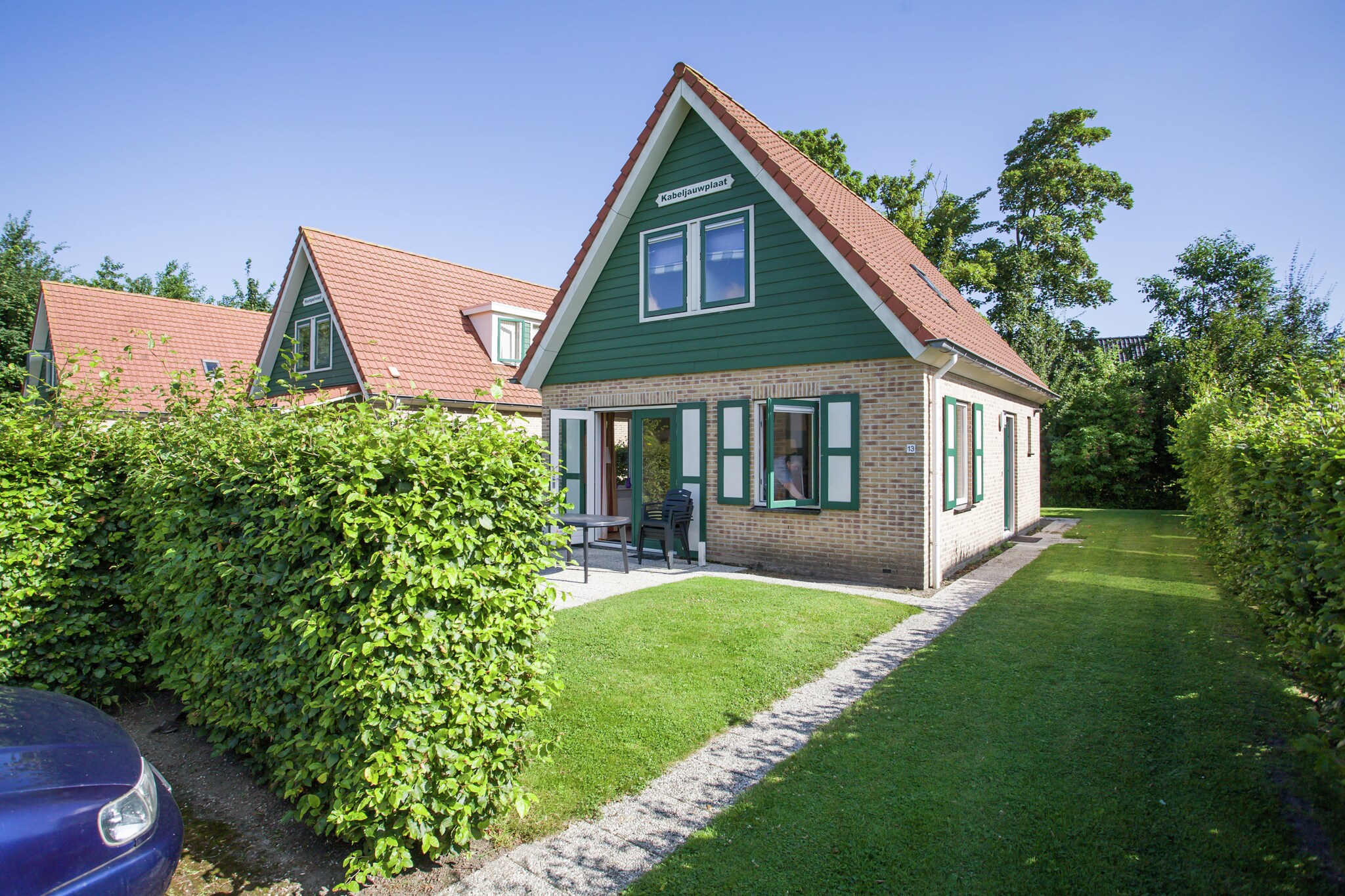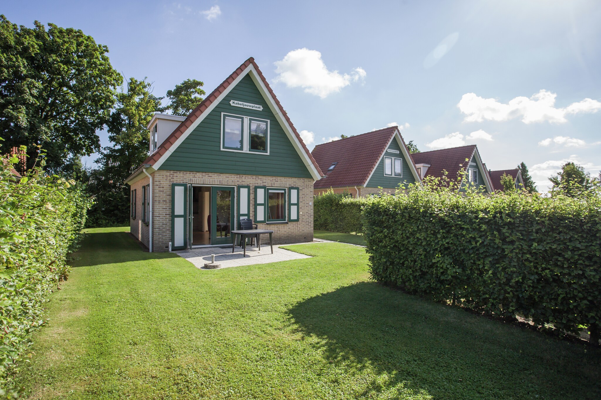 Het rode dak, de groene gevel en de groen met witte luiken geven het vakantiehuis een landelijke uitstraling. Het vakantiehuis is verzorgd en comfortabel ingericht. Rondom het huis kunnen de kinderen heerlijk spelen, terwijl u op het terras van de zon geniet. Kortom, een ideaal verblijf voor een vakantie met familie.