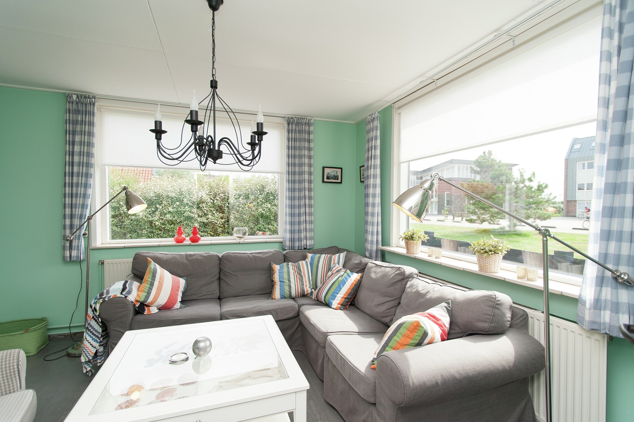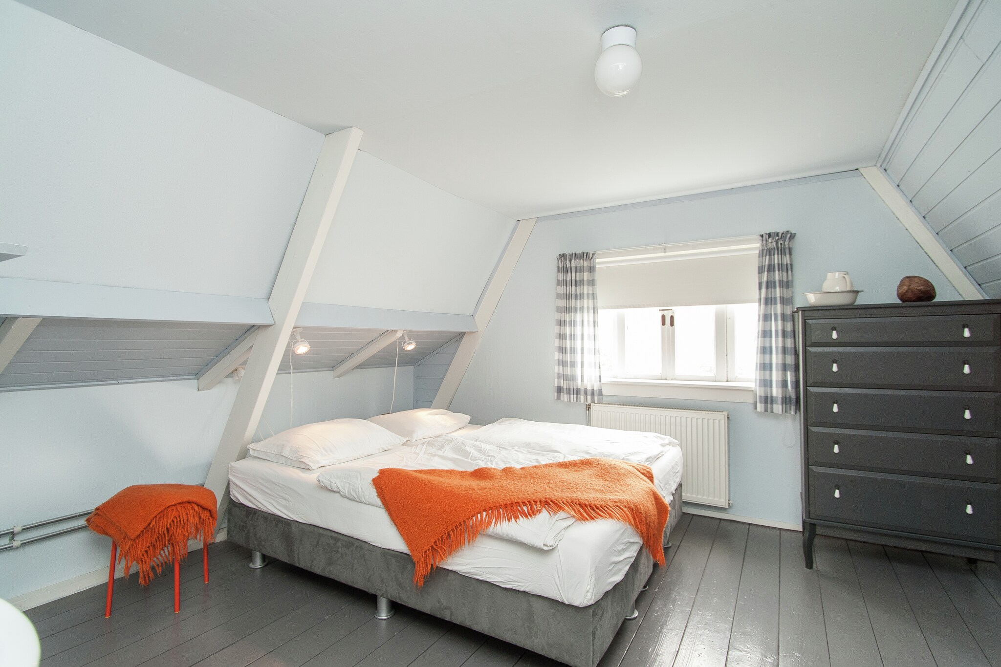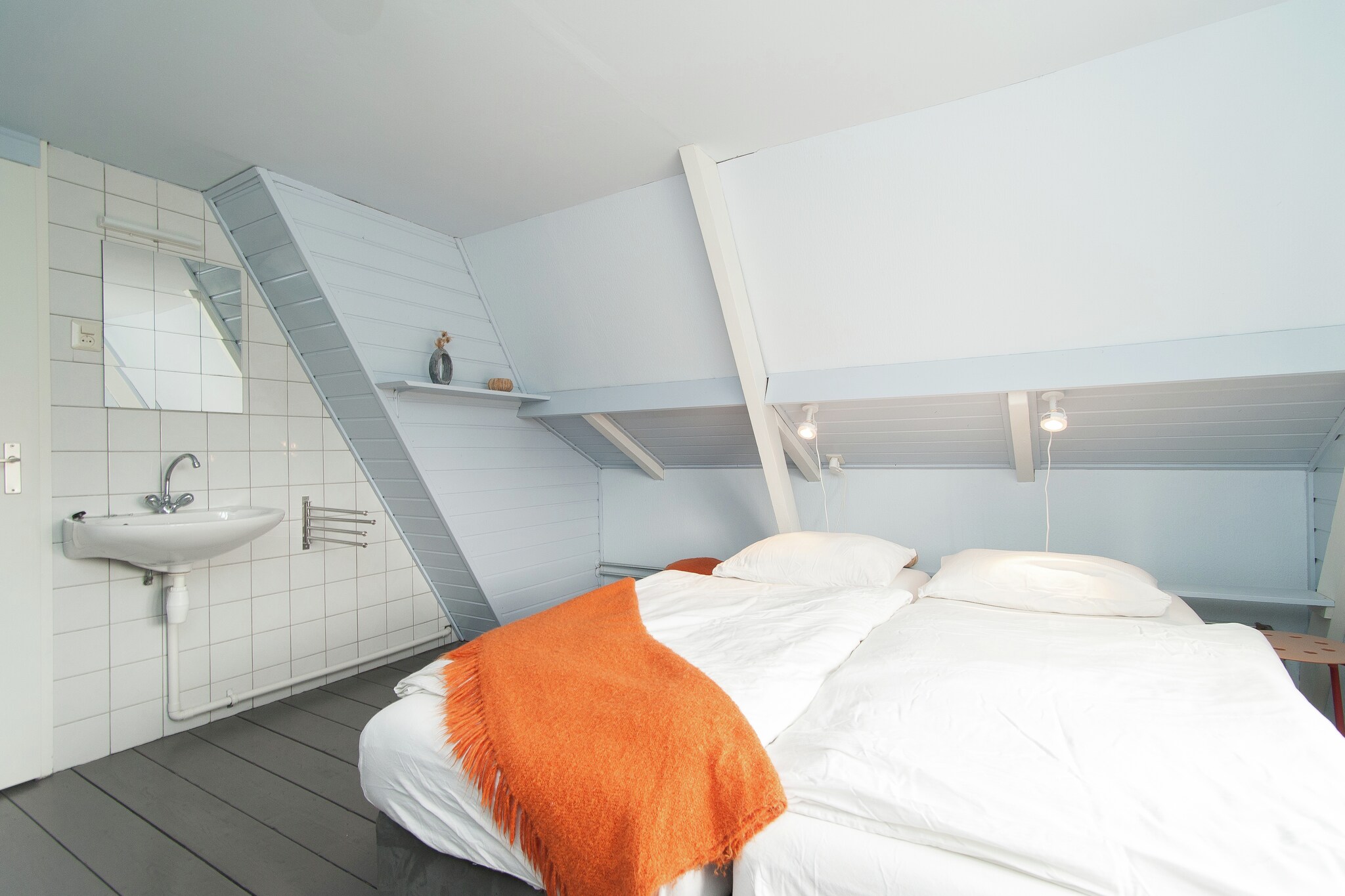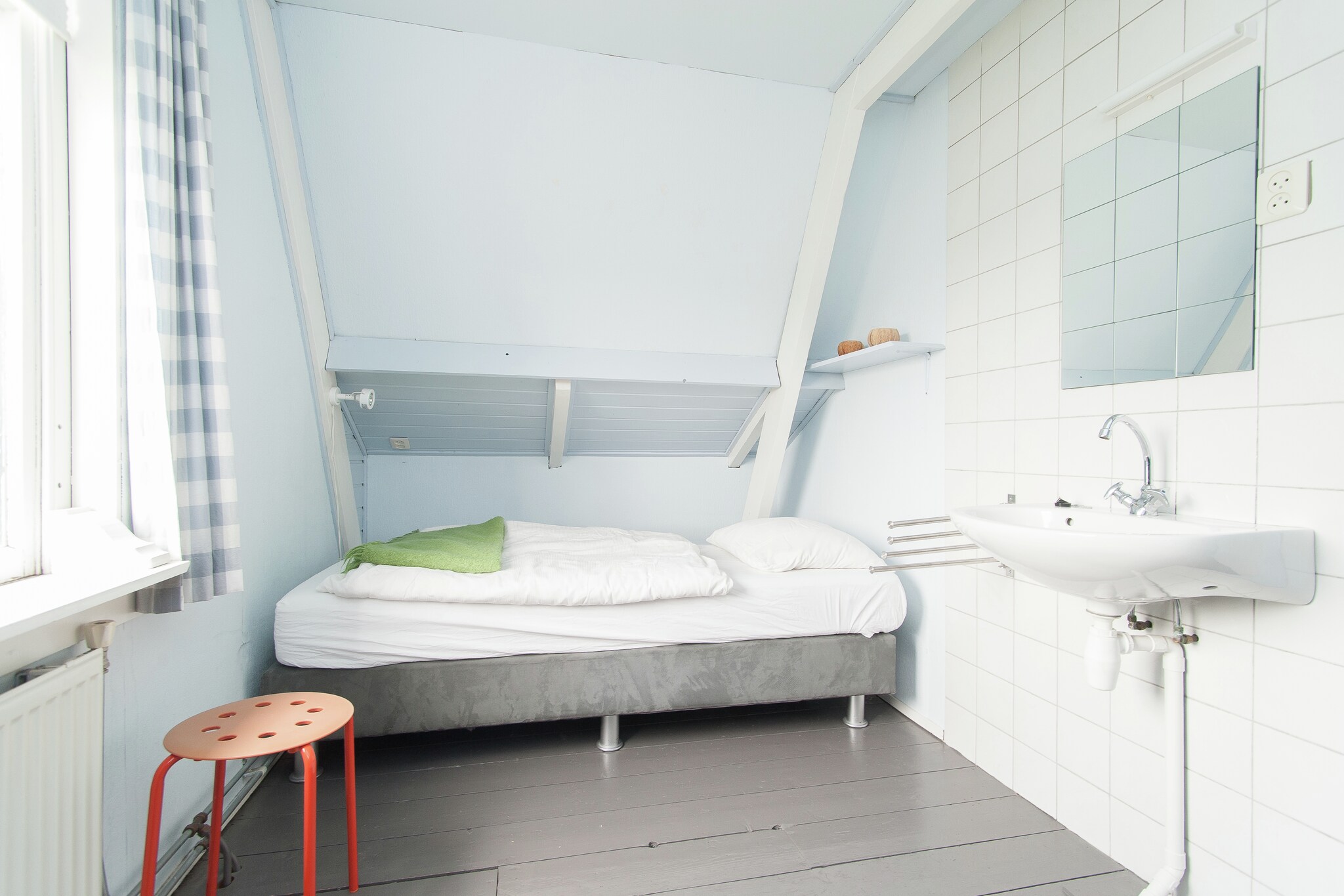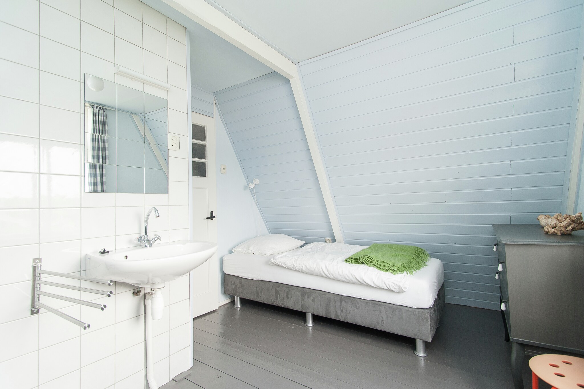 Het vakantiehuis is gezellig ingericht en de muren zijn voorzien van frisse, vrolijke kleuren. De knusse woonkeuken en de badkamer zijn voorzien van kleurrijke tegeltjes. Op de benedenverdieping treft u ook een slaapkamer aan. Via een (redelijk steile) trap bereikt u de etage, waar zich nog twee slaapkamers bevinden.