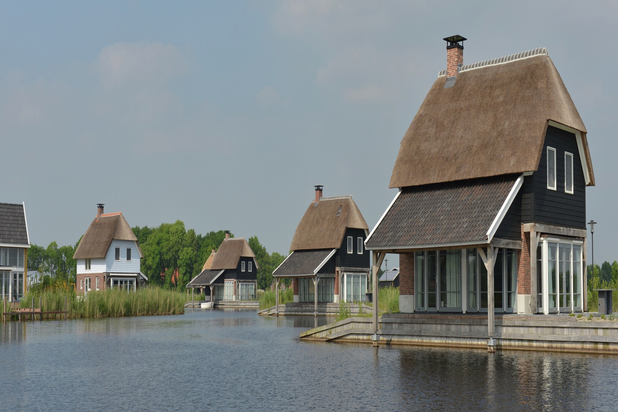 De vrijstaande, rietgedekte villa’s op Villapark De Weerribben zijn zeer comfortabel ingericht en voorzien van alle hedendaagse gemakken. Zo heb je de beschikking over een afwasmachine, een wasmachine en WiFi. De tuindeuren in de toch al ruime woonkamer, geven een ruimtelijk en licht karakter. Je hebt de keuze uit verschillende villa’s. Zo is er een 4-pers. (NL-8378-01), een 6-pers. (NL-8378-02), een 8-pers. (NL-8378-03), een 6-pers. wellness type met infrarood sauna en zonnebank (NL-8378-04) en een 8-pers. villa met één badkamer (NL-8378-05). Welk type ook het best bij jou past; de ruime kavels (500m2 – 1000m2) zijn altijd voorzien van een riante tuin en terras met tuinmeubilair.