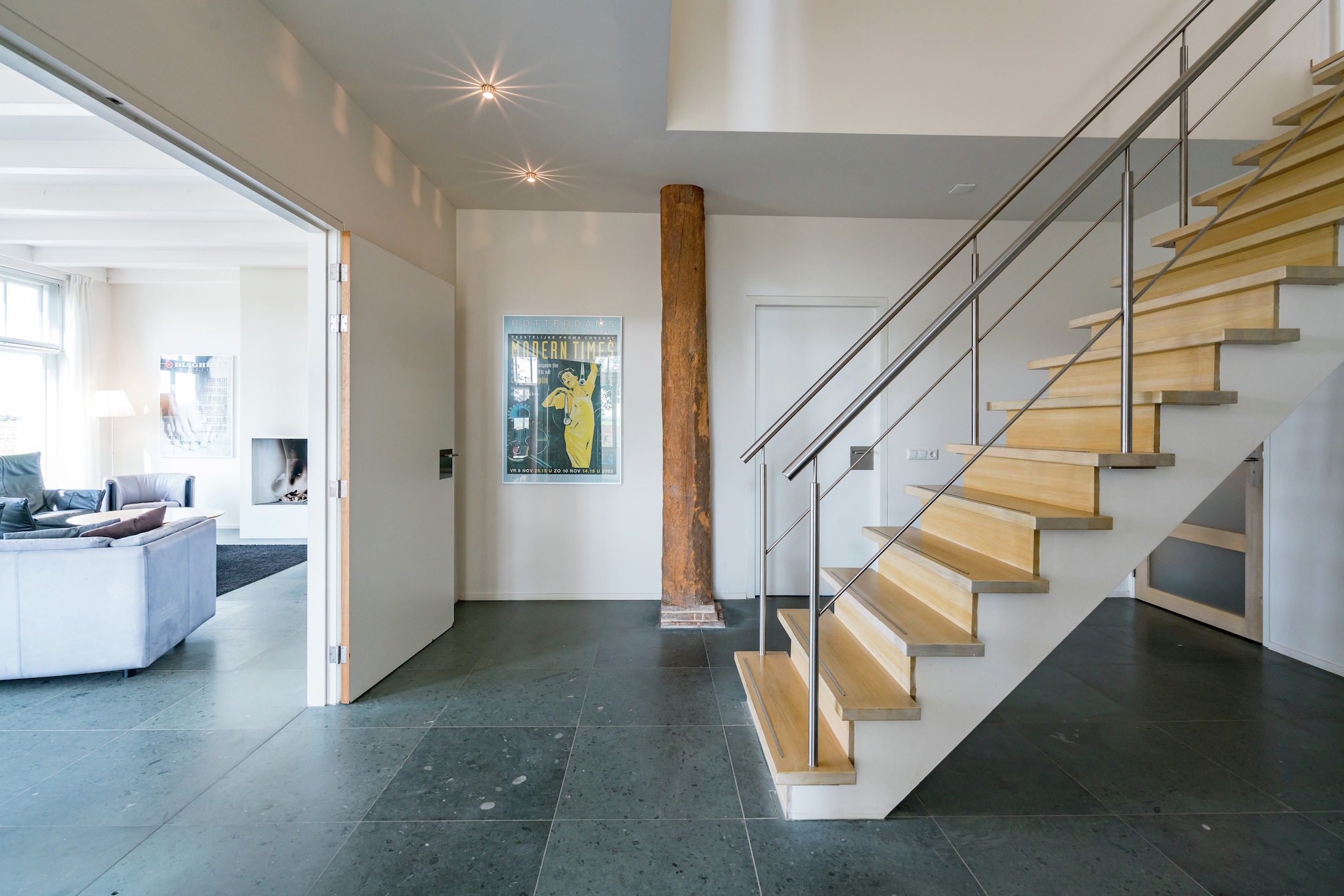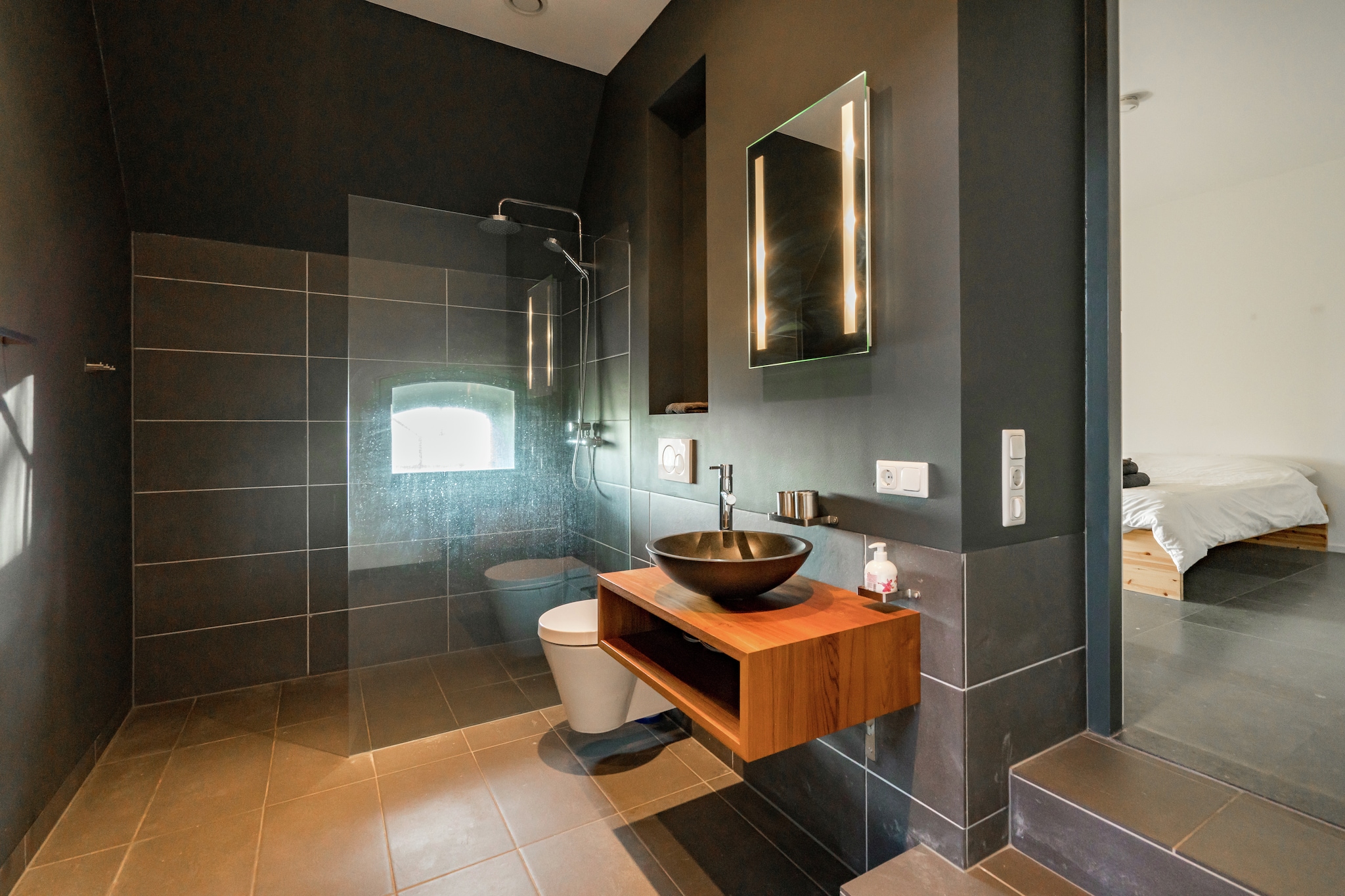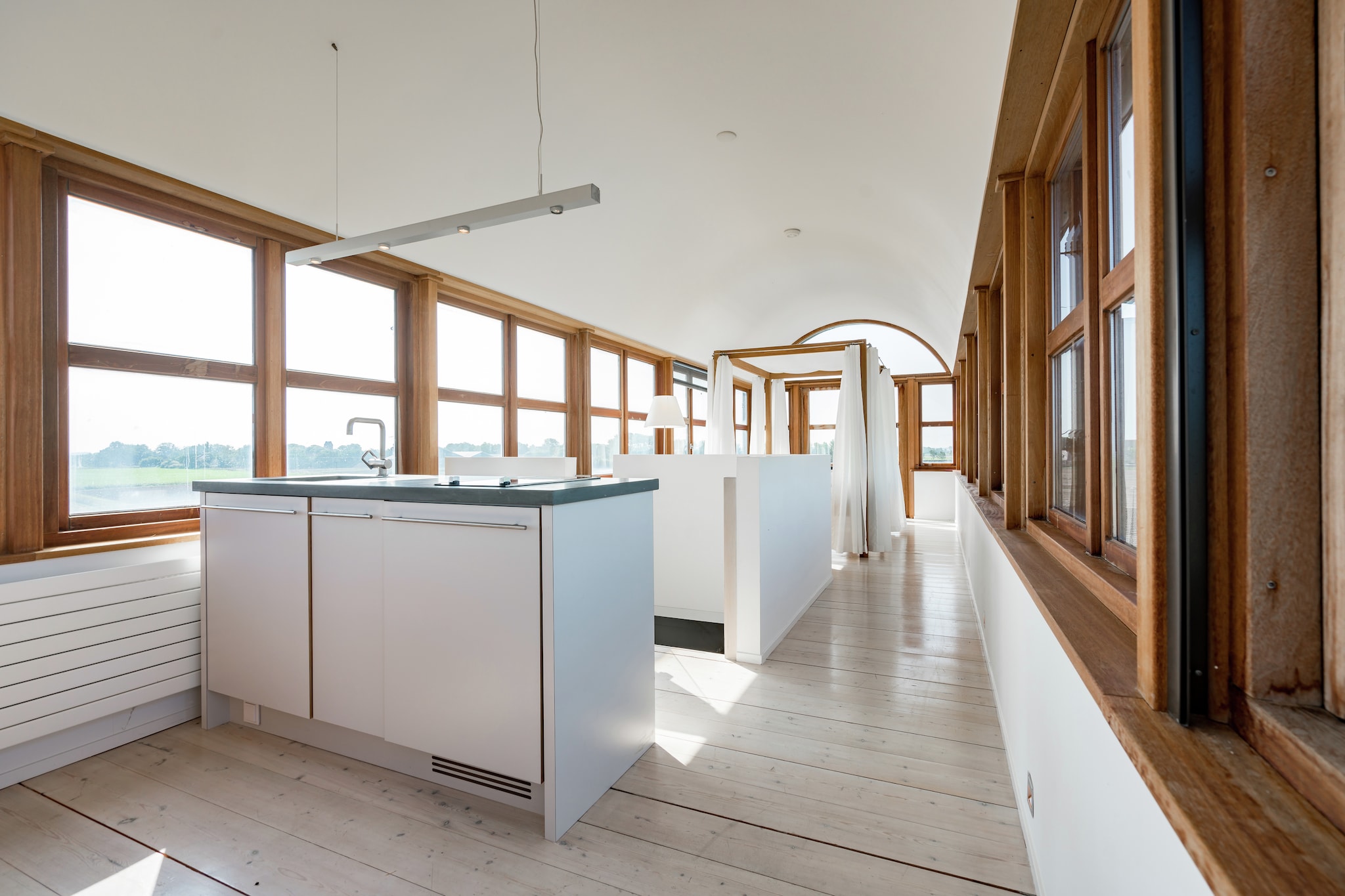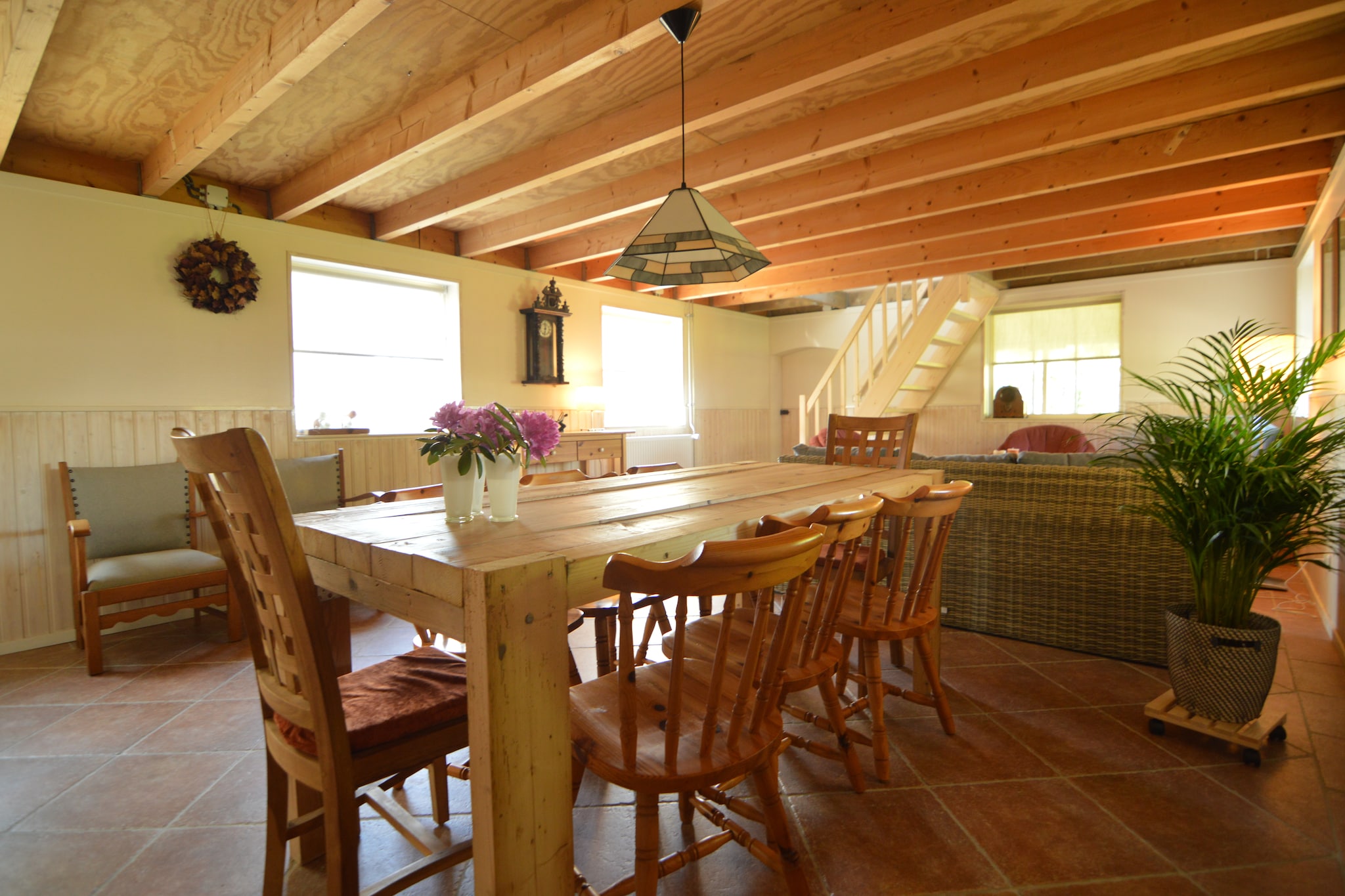 Deze nieuwe groepsaccommodatie bestaat uit twee geschakelde varianten: het Voorhuis en het Achterhuis. U kunt deze apart van elkaar huren, beiden zijn ze geschikt voor 18 personen) of als geheel (36 personen). Het Voorhuis en Achterhuis zijn middels een glazen gang met elkaar verbonden. Beide accommodaties zijn praktisch hetzelfde ingedeeld, maar dan gespiegeld. Per vakantiehuis vindt u op de begane grond een sfeervolle living. Er is een ruime woonkeuken, zodat u ook met maximaal 36 personen samen kunt dineren, aan een hele lange tafel zoals ze in 19e -eeuwse kastelen hadden.