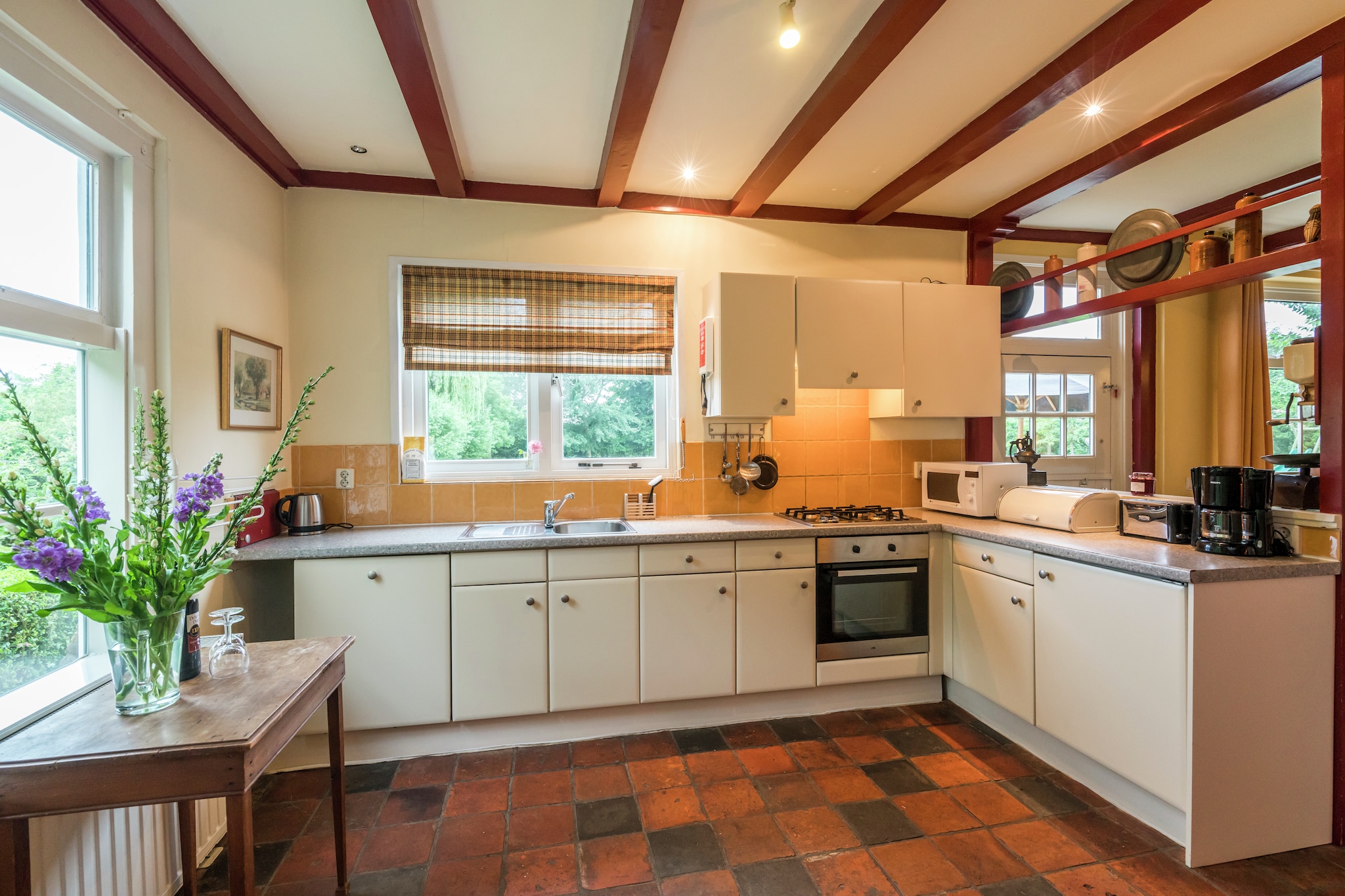 Deze Groepsaccommodatie heeft een gezellige woonkamer met zithoek en eettafel voor 12 personen. Zowel het woon- als het slaapgedeelte is gelegen op de begane grond. Vanachter het kookeiland in de moderne keuken kunt u de mooiste voedselcreaties maken.