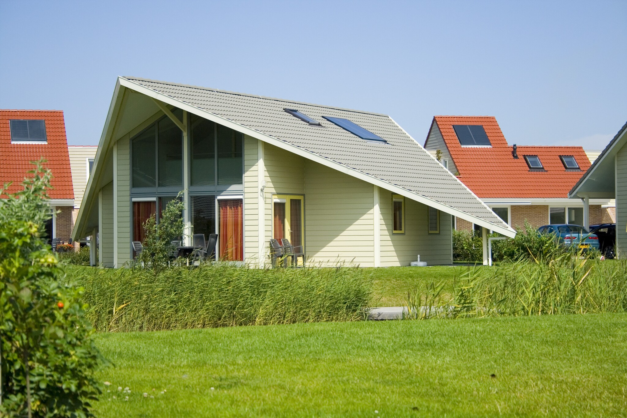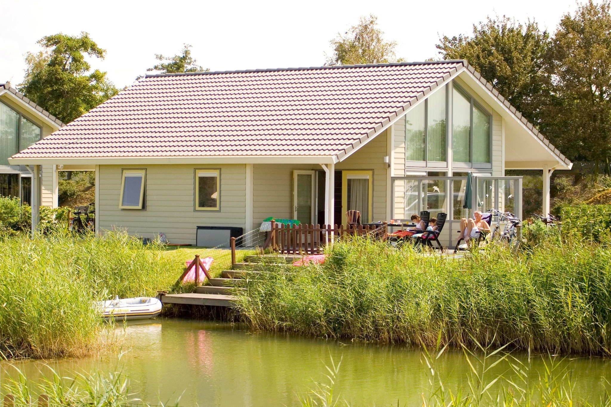 Er zijn vijf slaapkamers met elk een eigen luxe badkamer. Neem een stoomdouche of duik in het bubbelbad. Iedere slaapkamer heeft weer ander meubilair met speelse variaties. Er is zelfs een rond bed! De kids hebben fun in de ouderwetse bedstee of op de trampoline in de tuin.